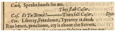 Image: The macaronic Shakespearean line “Et Tu Brutè?” as it appears in the 1623 “First Folio”.