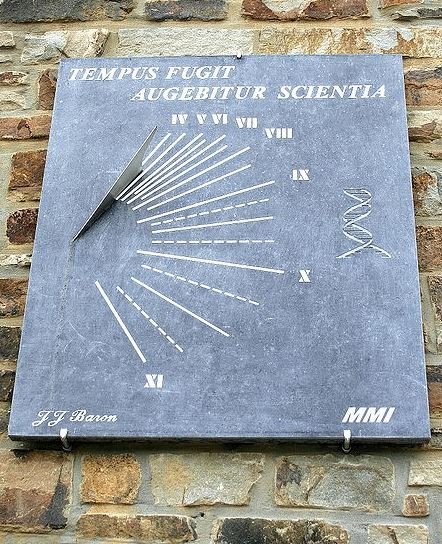 Image: An instance of the phrase, “Tempus fugit”, used as a sundial motto in Redu, Belgium.