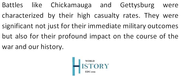 Conversely, the losses at Chickamauga and Chancellorsville, although costly, demonstrated the Confederacy’s resilience and tactical superiority under capable leaders like Lee and Jackson.