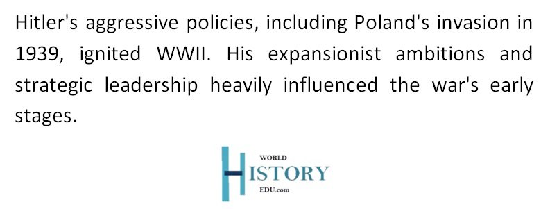 Role in WWII: Hitler’s aggressive foreign policies, including the invasion of Poland in 1939, triggered the start of World War II. He aimed for territorial expansion, dominance in Europe, and the establishment of a racially motivated Nazi empire. Hitler’s military strategies and leadership style had a profound impact on the early stages of the war.