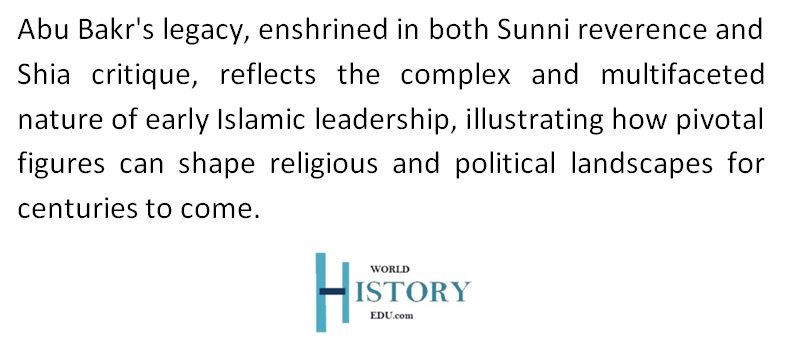 Sunni Muslims revere Abu Bakr as the first of the rightly-guided caliphs, celebrating his close companionship with Muhammad and his leadership qualities. In contrast, Shia Muslims criticize his succession, believing that Ali ibn Abi Talib was the rightful successor as appointed by Muhammad. Shias also view some of Abu Bakr’s actions, such as the refusal to grant Fatimah the land of Fadak, as politically motivated against Ali and the Prophet’s family.
