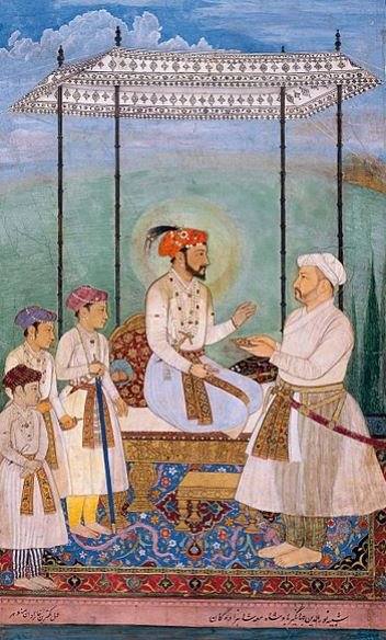 Asaf Khan (right) and Shah Jahan (center) with his sons (left)