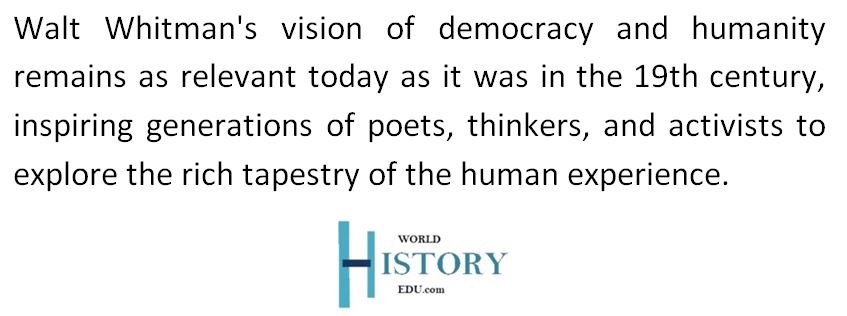 Whitman believed that poetry and democracy were inherently linked. He celebrated America’s diversity and championed the idea that all individuals, regardless of class or background, contributed to the nation’s greatness.