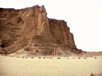 The remaining pillars of the Temple of Amun stand at the base of Jebel Barkal.