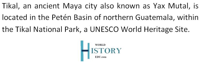 Tikal, located in northern Guatemala’s Petén Basin, stands as one of the most significant archaeological sites of the ancient Maya civilization. Likely referred to as Yax Mutal in antiquity, this city flourished as a dominant power during the Classic Period (c. 200–900 AD). Today, it is part of Tikal National Park, a UNESCO World Heritage Site. With monumental architecture, complex dynasties, and a vast urban sprawl, Tikal offers unparalleled insight into Maya culture, politics, and daily life.