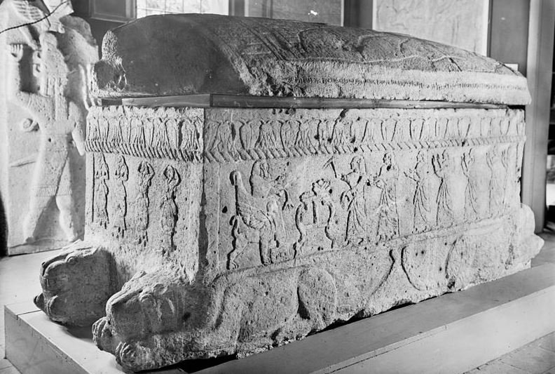 The oldest recorded languages with complete sentences represent significant milestones in the history of human communication and written expression. Image: The Ahiram sarcophagus in its original discovered state.