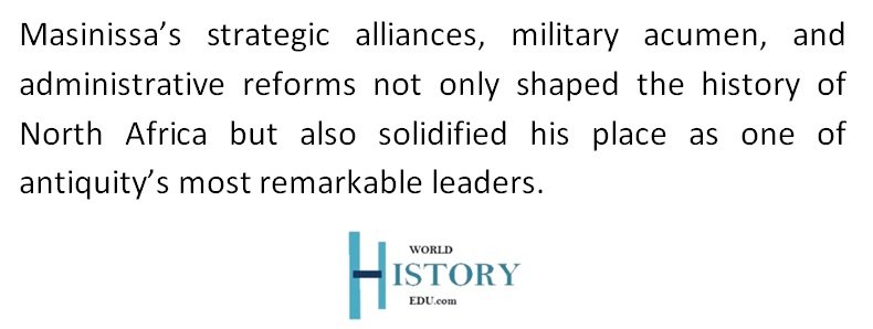 Masinissa is credited with transforming Numidia into a productive agricultural region and laying the foundation for its role as the “breadbasket of Rome.”