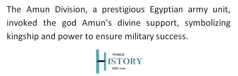 The Amun Division was likely one of the most significant and prestigious divisions of the Egyptian army. The god Amun was a major deity in ancient Egyptian religion, associated with kingship and divine power. The inclusion of the name “Amun” in the division’s title emphasized the divine support and blessing sought for the success of the Egyptian forces.