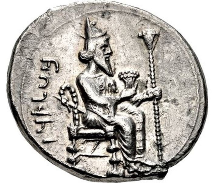 A silver coin depicting Artaxerxes III as Pharaoh of Egypt