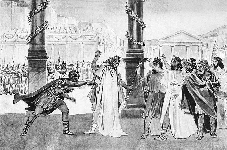Philip II was assassinated during the wedding of his daughter, Cleopatra of Macedon, to Alexander I of Epirus. The event, held in Aegae, the ancient capital of Macedonia, was a grand affair attended by many Greek dignitaries, diplomats, and nobles. As Philip entered the theater, unprotected to appear approachable, Pausanias of Orestis, a member of his bodyguard, fatally stabbed him. The assassin attempted to flee, but his escape was thwarted when his horse stumbled, allowing Philip’s other guards to apprehend and kill him.