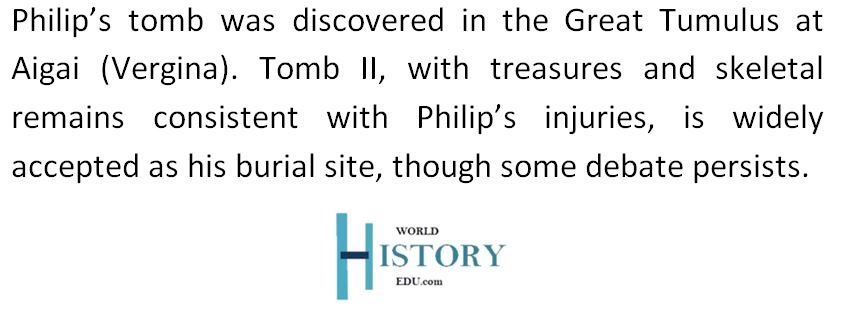 After Philip’s death, his assassin was killed during an escape attempt. His son, Alexander the Great, was proclaimed king by the Macedonian army and nobility, securing the Argead dynasty’s continuation.