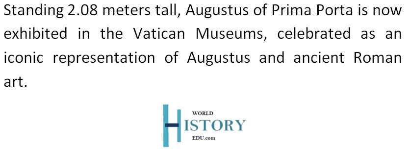 Today, the Augustus of Prima Porta is housed in the Vatican Museums, where it continues to captivate audiences as a masterpiece of Roman art. It symbolizes the ideological and cultural shifts that defined Augustus’ reign, marking Rome’s transition from republic to empire.