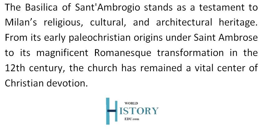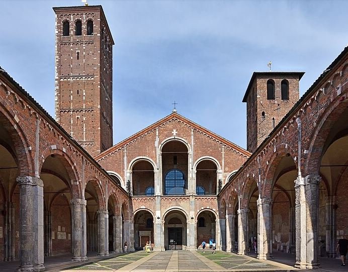 The Basilica of Sant’Ambrogio, officially known as Basilica romana minore collegiata abbaziale prepositurale di Sant’Ambrogio, is a prominent Roman Catholic church in Milan, Lombardy, Italy. Renowned for its Romanesque architecture and deep historical significance, this basilica stands as one of the most important religious and cultural landmarks in the city. Originally commissioned by Saint Ambrose in the late 4th century, the church has undergone multiple renovations, particularly during the 12th century when it took its present Romanesque form.