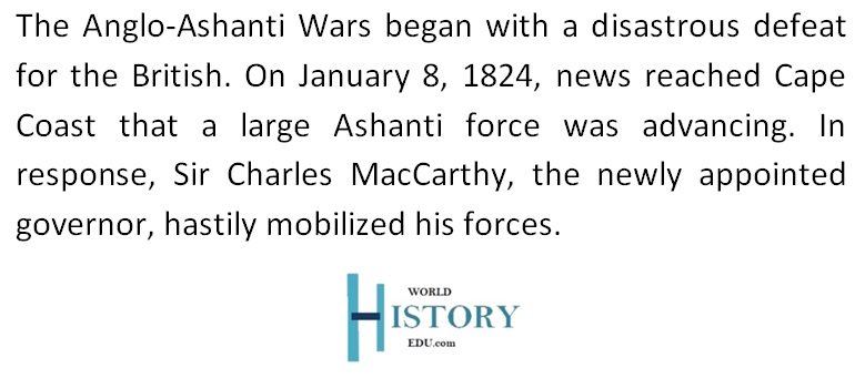 At the time, the British forces in the region were under the command of Charles MacCarthy, the governor of the British Gold Coast territories. Recognizing the threat posed by the powerful Ashanti military, MacCarthy sought to counter the Ashanti forces with a combined army of British troops, colonial militias, and local Fante allies. His primary strategy was to divide his forces into four groups and converge on the enemy to deliver an overwhelming blow.