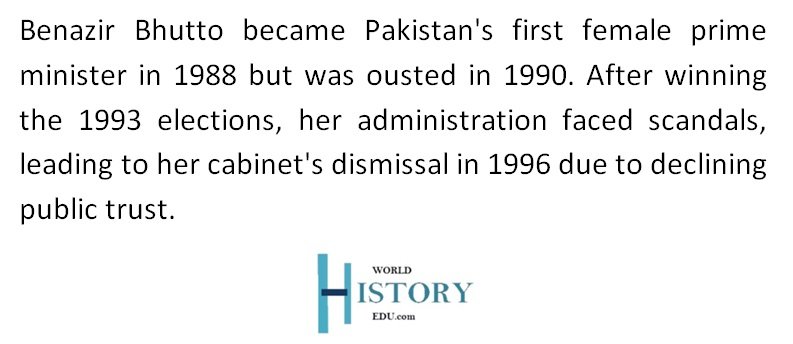 Bhutto’s time in office was marked by allegations of corruption, economic challenges, and tensions with the military establishment. She also faced significant resistance due to her gender in the male-dominated realm of Pakistani politics.