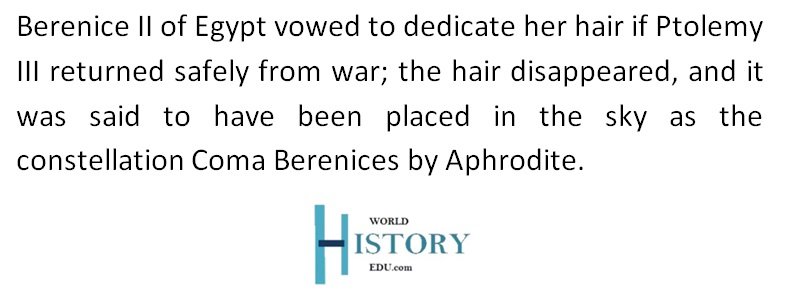 However, the hair mysteriously disappeared, prompting the court astronomer Conon of Samos to declare that Aphrodite had placed it in the sky as a new constellation, known today as Coma Berenices.
