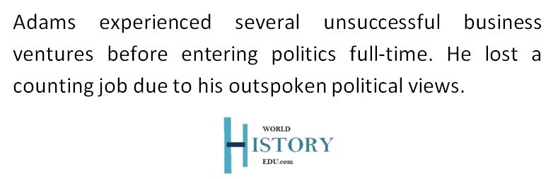 Adams took a number of unsuccessful business ventures before going full time into politics. He lost a counting job because of his clear political views.