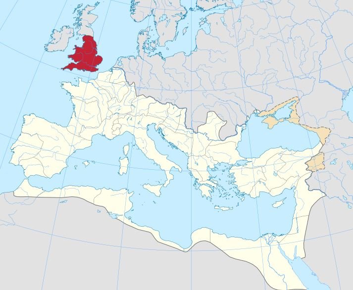 The Roman province of Britain, shown in red, where the revolt occurred, with the Roman Empire depicted in white.