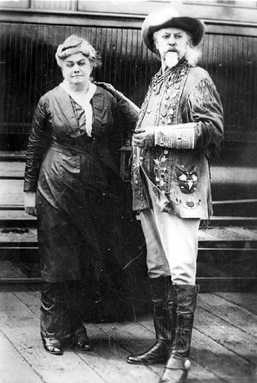 Buffalo Bill was born in Le Claire, spent part of his childhood in Mississauga, Ontario, Canada, and later moved with his family to the Kansas Territory. After his father’s death, he began working at the age of 11 to support his family. Image: Buffalo Bill (right) with his wife, Louisa (left).