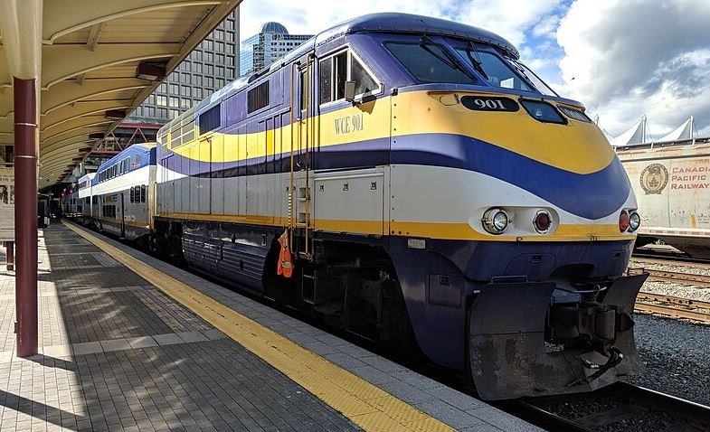 Image: Commuter train, West Coast Express at Waterfront station in Downtown Vancouver.