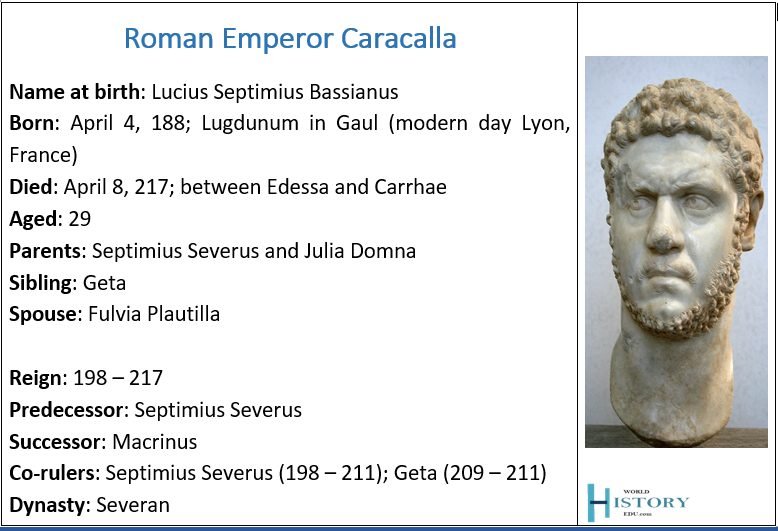 Below are some of the most notable achievements of Roman Emperor Caracalla, whose reign lasted from 28 January 198 – 8 April 217: