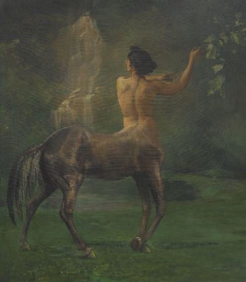 In Greek mythology, Centaurs (Kentauroi) were half-man, half-horse beings living in the mountains and forests of Thessaly. Image: A painting depicting a female Centaur.