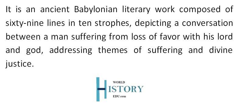 “The Dialogue between a Man and His God” is the earliest known theodicy, examining why a deity permits evil and reflecting on human suffering.