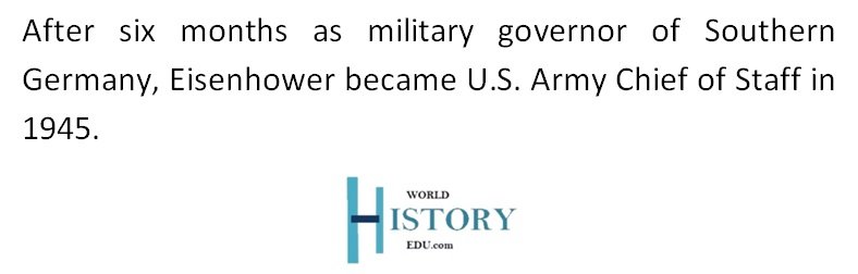 After spending about six months as the military governor of the American Occupation Zone in Southern Germany, Eisenhower was called to Washington D.C. in November 1945 to serve as the 16th Chief of Staff of the U.S. Army.