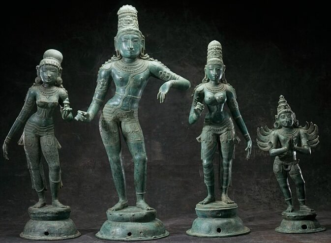 Hinduism’s flexibility and inclusiveness allowed it to absorb a wide range of beliefs, making it the dominant religion in India for centuries. Image: Krishna Rajamannar with His Wives, Rukmini and Satyabhama, alongside His Mount, Garuda, late 12th-13th century.