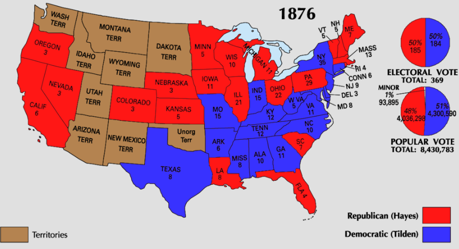 The election of 1876 between Rutherford B. Hayes and Samuel J. Tilden was one of the most contentious in U.S. history. Tilden won the popular vote, but there were disputes over the electoral votes in several states.