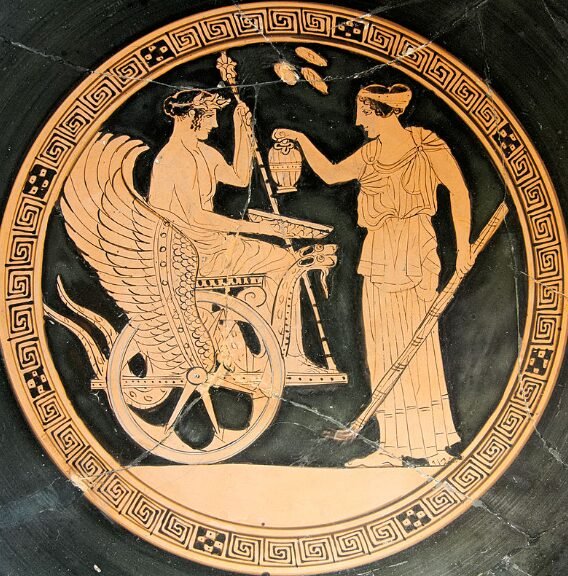 Triptolemus and Persephone, tondo of a red-figure Attic cup