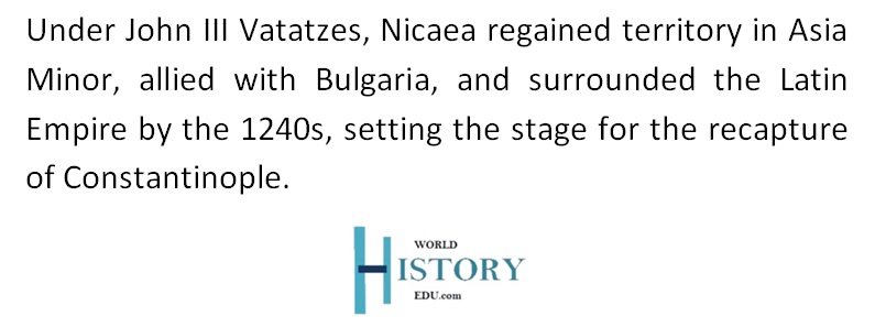 Its strategic location in northwestern Anatolia allowed it to resist the Latin Empire while expanding its territory, defeating rivals like Trebizond and Epirus.