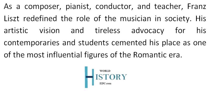 Franz Liszt was a renowned Hungarian composer, virtuoso pianist, and teacher of the Romantic period. His career spanned over six decades, and he is celebrated as one of the most influential musicians of his era.