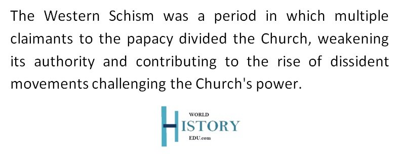 The Great Schism weakened the Church’s authority, as different rulers supported different claimants to the papacy. This fragmentation of religious power contributed to the growing dissatisfaction with the Church that would eventually culminate in the Protestant Reformation in the 16th century.