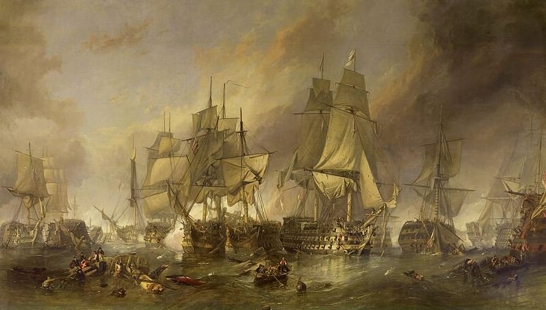 Image: A depiction of The Battle of Trafalgar by English painter Clarkson Frederick Stanfield