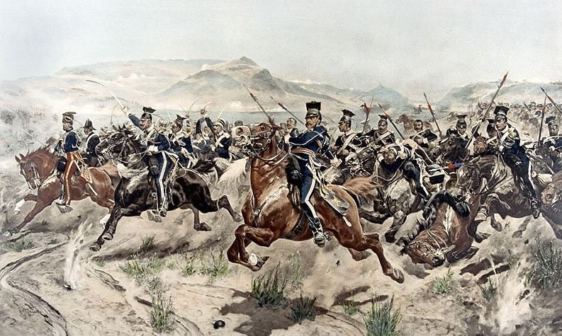 Image: A painting by English artist Richard Caton Woodville Jr., depicting the Charge of the Light Brigade.