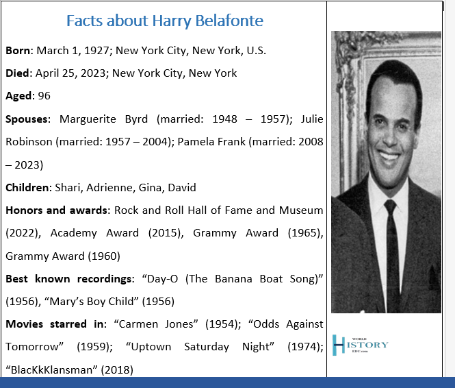 Belafonte’s life and career span several decades and encompass a wide range of artistic and activist pursuits, making him a multifaceted and influential figure in American history.
