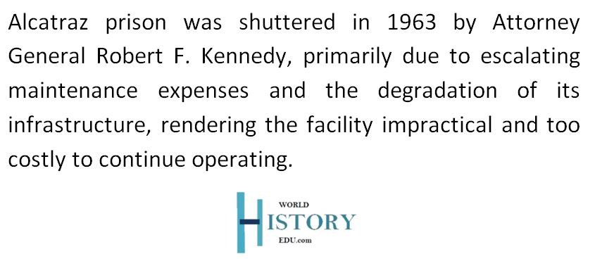 Alcatraz was closed as a federal penitentiary in 1963 by Attorney General Robert F. Kennedy, due to the high cost of its operation and the deteriorating facilities. Following its closure, the island was occupied by Native American activists in 1969, in a protest that lasted 19 months and aimed to highlight federal injustices towards Native Americans.
