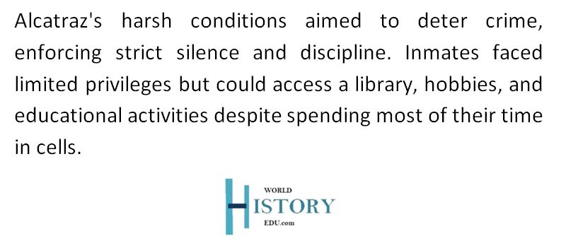 The conditions within Alcatraz were harsh by design, intended to serve as a strong deterrent to crime. Inmates were subjected to a strict regime that emphasized silence, a rule that was later relaxed. The prison was known for its rigid discipline and the limited privileges afforded to the inmates, who were locked in their cells for the majority of the day. Despite the harsh conditions, the prison boasted a library, and inmates were encouraged to engage in hobbies and educational activities.