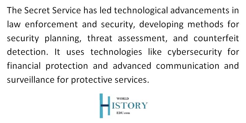 The Secret Service has consistently been at the forefront of technological advancements in law enforcement and security. The agency has developed sophisticated methods for advanced security planning, threat assessment, and counterfeit detection. It employs a range of technologies from cybersecurity measures to protect the financial infrastructure, to advanced communication and surveillance equipment in the protective services arena.