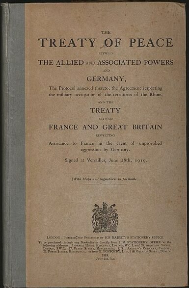 The widespread resentment towards the Treaty of Versailles among Germans underscores the critical role of perceived justice in international relations and the consequences when peace settlements are seen as punitive rather than reconciliatory. Image: A cover of the English version of the Treaty of Versailles.
