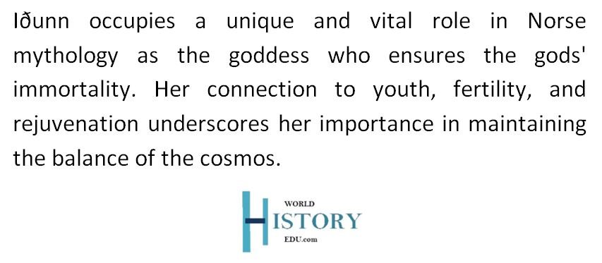 Her apples keep the gods youthful until Ragnarök. The Prose Edda details her critical role in preserving the vitality of the Æsir.