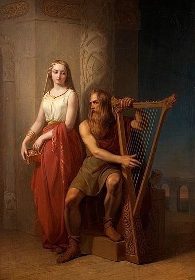 A painting depicting Idunn with Bragi (right). Artwork by Swedish painter Nils Blommér.