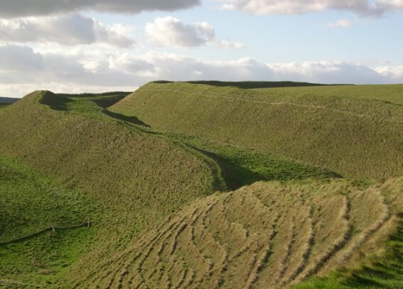 Maiden Castle, located in Dorset, is one of Europe’s largest hill forts, covering 47 acres. It dates back to the Iron Age and served as a defensive stronghold and settlement for local tribes.