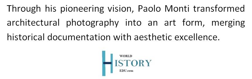 Monti’s work went beyond simple documentation; his photographs conveyed the essence of architectural spaces, emphasizing form, texture, and historical context. His images were used to illustrate over 200 books and publications, covering a wide range of subjects, including Italian cities, architects, historical sites, and cultural landmarks.