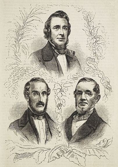 John L. Stephens (top), William H. Aspinwall (left), and Henry Chauncey, the pioneers behind the Panama Railroad.