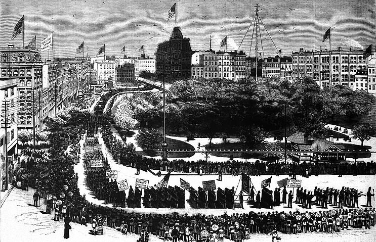 Labor Day originated in the late 19th century from the growth of the trade union and labor movements, with the first parade held in New York City by the Central Labor Union and the Knights of Labor. Image: An illustration depicting the first labor parade in the US.