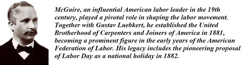 In contrast, Peter J. McGuire, vice president of the American Federation of Labor, reportedly got the idea after witnessing labor celebrations in Toronto and proposed a similar celebration in the spring of 1882.