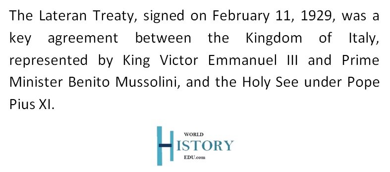 - The Treaty of Conciliation – Established Vatican City as an independent sovereign state.