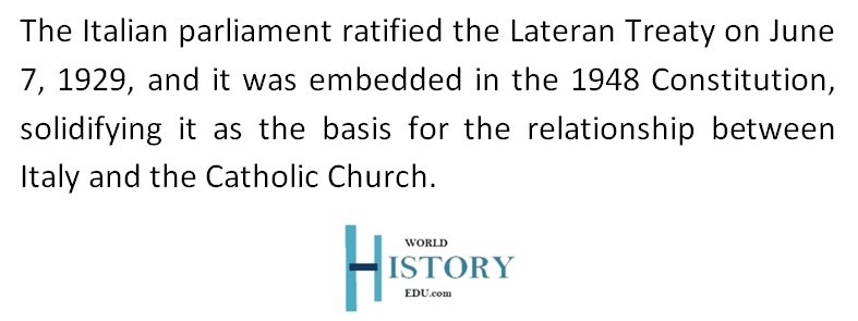 The Lateran Pacts were integrated into the 1948 Italian Constitution, solidifying the legal basis for Church-state relations.